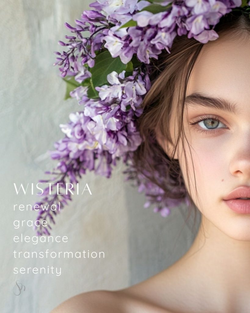 Wisteria’s cascading purple flowers evoke feelings of grace and transcendence. Symbolizing longevity, beauty, and serenity, wisteria is often associated with the unfolding of time and patience. The flower’s quiet beauty aligns with violets in its representation of spiritual peace and inner harmony. The twisting vines also speak to the complexity and beauty of personal growth, much like the transformation process symbolized by violets.